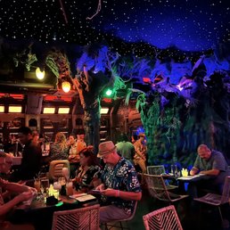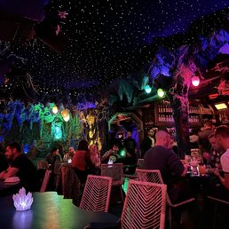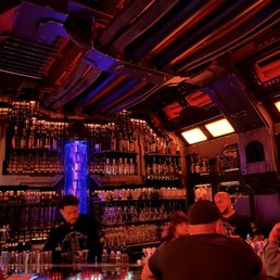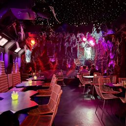 Incredible atmosphere, give you a feeling like you're crashed somewhere on a distant moon with digital stars above you and interactive technological art pieces all around keep you stimulated and curious. Staff was very friendly and the service was quick even with the place totally packed. While the food was a bit outside where my tastebuds were leaning that night (not bad food, honestly the onion pancake thing was pretty good) just not the spicy steak burrito I was craving), the *drinks* were... dare I say out of this world? Look, I'll post pictures of the ones we got and I do recommend those ones for anyone else too. They have a wonderful visual guide to tell you how strong the drinks are too, in a delightful menu printed to appear like some sort of manual or local guide with fantastic artwork and some serious space-grunge appeal. Bathrooms are limited, only two of them that I could find and they're both single stall, so keep that in mind if you go on a busy night. 10/10 would come again with friends.